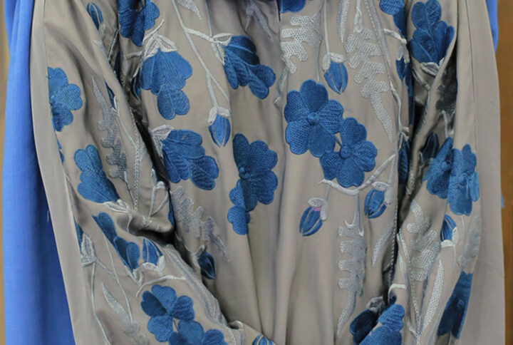 Elegant and modest, this gray abaya is a perfect blend of simplicity and style. The delicate blue floral patterns adorn the front and sleeves, adding a graceful touch of charm. Crafted from high-quality fabric, it offers comfort and sophistication for everyday wear or special occasions. The abaya features a relaxed fit with a flowy silhouette, ensuring ease of movement while maintaining a timeless appeal.